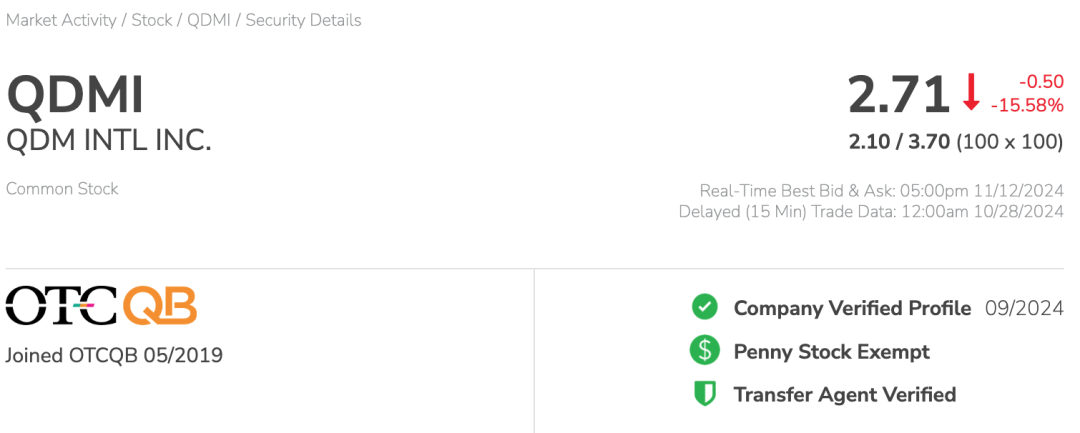 香港保险分销商QDM International于11月12日向美国证券交易委员会提交了首次公开募股(IPO)申请,计划在纳斯达克上市,预计募资800万美元。该公司目前在美国OTC市场OTCQB上市,股票代码为“QDMI”。