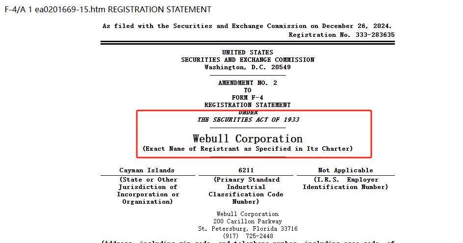 2024年12月26日,湖南微步信息科技有限责任公司的实质控股公司Webull Corporation(微牛证券)向美国证券交易委员会(SEC)递交了F-4/A表格,计划通过借壳美国SPAC公司SK Growth Opportunities Corporation(SKGR)在美国纳斯达克挂牌上市。