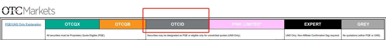 OTC Pink作为OTC市场的最低层级,长期以来以低门槛著称,允许企业选择不披露财务信息(No Information状态),但这也导致市场鱼龙混杂。此次以 OTC ID 取代 Pink Current,用OTC的CEO克伦威尔·库尔森的话来说就是:“ Pink Current市场限制了投资者辨别积极提供的公司与公开信息的披露水平的能力。我们正在进行此更改,以帮助投资者更好地了解公司在提供和认证我们网站上提供的信息方面的参与程度。”