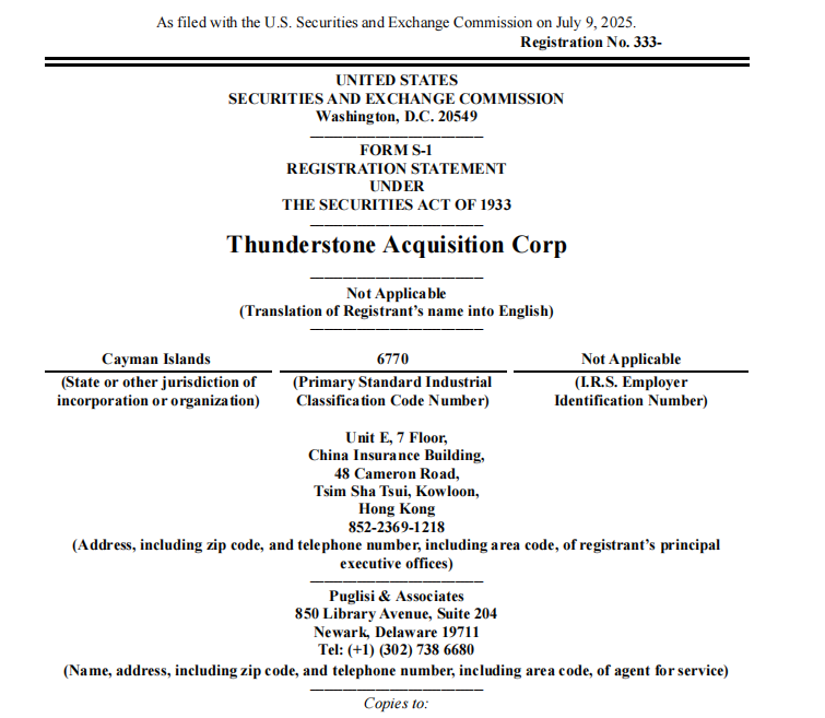 Thunderstone Acquisition Corp是一家注册于开曼群岛的特殊目的收购公司(SPAC),其成立初衷是与一家或多家企业开展合并、股份交换、资产收购等类似业务合并。该公司投资方向聚焦两条主线:一是绿色技术领域,涵盖城市科技、清洁能源等;二是环保消费品与服务领域,包括数字服务、健身娱乐等。