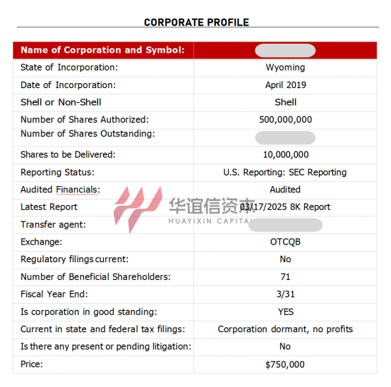 华谊信壳资源推荐——OTCQB高质量洁净壳