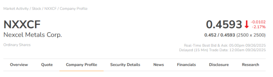 3、 Nexcel Metals Corp. (OTCQB: NXXCF)