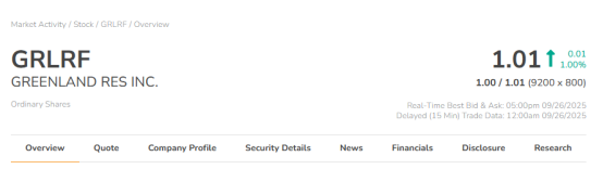1、GREENLAND RESOURCES INC. ( OTCQB: GRLRF)
