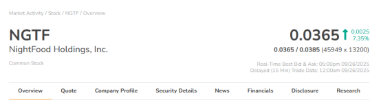 4、NightFood Holdings, Inc. (OTCQB: NGTF)