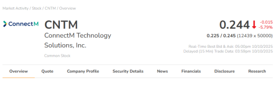 2、ConnectM Technology Solutions, Inc. (OTCQB: CNTM)