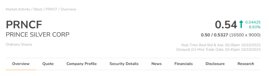 5、PRINCE SILVER CORP (OTCQB: PRNCF)