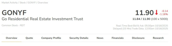 5、Go Residential Real Estate Investment Trust (TSX-V: GONYF; OTCQB: GONYF) 是一家根据安大略省法律设立的内部管理型开放式房地产投资信托。
