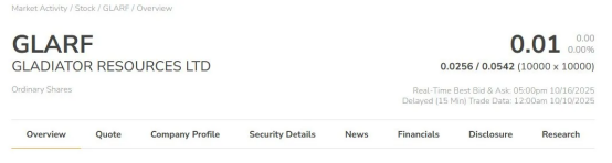 3、GLADIATOR RESOURCES LTD (ASX: GLA; OTCQB: GLARF) 是一家专注于铀和稀土元素的勘探与采矿公司。