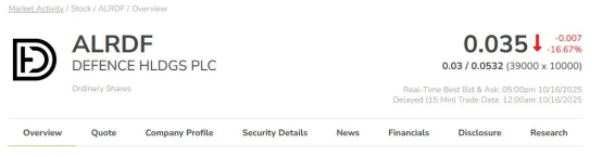 2、DEFENCE HOLDINGS PLC (LSE: ALRT; OTCQB: ALRDF) 致力于为英国和欧洲市场提供高性能的国防和安全解决方案。