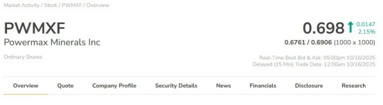7、Powermax Minerals Inc (CSE: PMAX; OTCQB: PWMXF) Powermax是一家加拿大矿产勘探公司,持有收购位于不列颠哥伦比亚省的卡梅隆-里特(稀土元素)房产以及位于安大略省的阿蒂科坎-里特地产的期权。