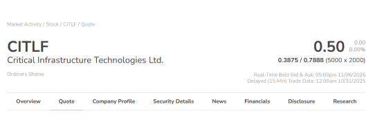 2、Critical Infrastructure Technologies Ltd. (CSE: CTTT; OTCQB: CITLF)