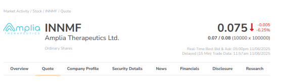 1、Amplia Therapeutics Ltd. (ASX: ATX; OTCQB: INNMF)