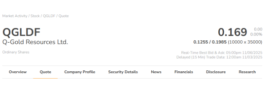 5、Q-Gold Resources Ltd. (TSX-V: QGR; OTCQB: QGLDF)