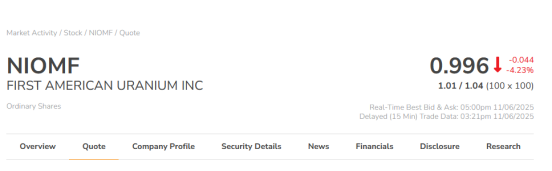 3、FIRST AMERICAN URANIUM INC. (CSE: URM; OTCQB: NIOMF)