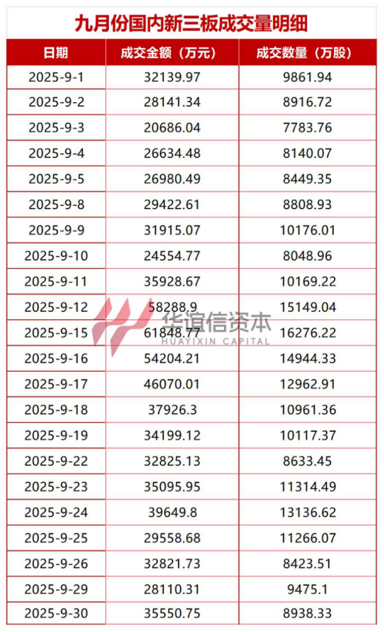 2025年9月国内新三板全月成交金额约78.02亿元、成交数量约22.34亿股,日度交易波动明显,中旬(9月12日、15日)成交金额居前,9月3日成交低迷,整体规模与美国OTC市场差距显著,反映出其在服务中小微企业的流动性与资本承载能力上仍有提升空间。