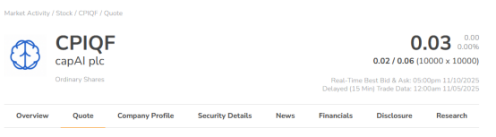 3、capAI plc (LSE: CPAI; OTCQB: CPIQF)