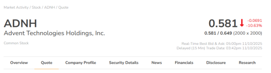 1、Advent Technologies 控股公司(OTCQB:ADNH)
