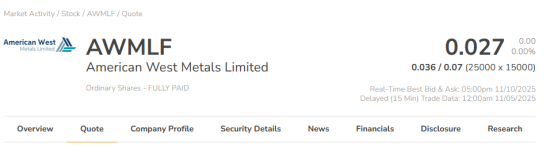2、American West Metals Limited (ASX: AW1; OTCQB: AWMLF)