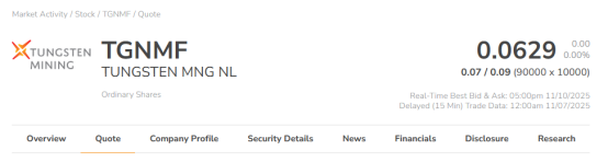 6、Tungsten Mining NL (ASX: TGN; OTCQB: TGNMF)