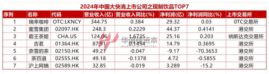 当2024年现制茶饮行业业绩榜出炉时,一组反差数据刺痛了市场神经:OTC起步的瑞幸咖啡以344.75亿元营收、29.32亿元净利润蝉联榜首,营收同比增长38.4%;而早于瑞幸登陆港股主板的奈雪的茶,却交出了营收49.21亿元、净亏损9.17亿元的成绩单,净利润同比下滑幅度高达7036%。