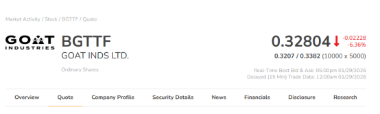 2、GOAT INDS LTD. (CSE: GOAT; OTCQB: BGTTF)