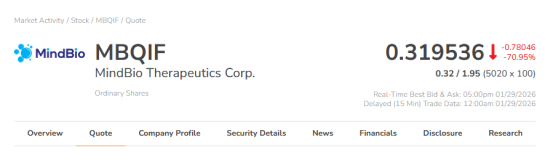 8、MindBio Therapeutics Corp. (CSE:MBIO;OTCQB:MBQIF)