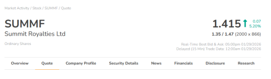 5、Summit Royalties Ltd. (TSX-V: SUM; OTCQB: SUMMF)