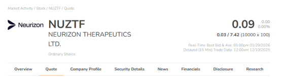 4、NEURIZON THERAPEUTICS LTD. (ASX: NUZ; OTCQB: NUZTF)