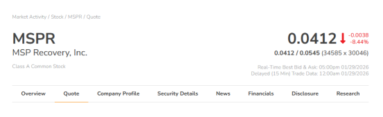 3、MSP Recovery, Inc. (OTCQB: MSPR, MSPRZ)