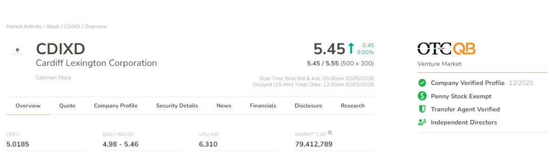 财务方面,截至2025年9月30日的三季度数据显示,公司总收入876.33万美元,净亏损282.15万美元,资产总额2760.95万美元。此次募资拟用于偿还债务及补充营运资金,计划转板后在纳斯达克资本市场沿用代码CDIXD。