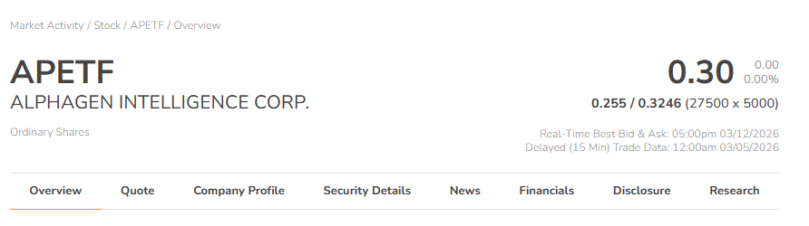 1、ALPHAGEN INTELLIGENCE CORP. (CSE:AIC;OTCQB:APETF)