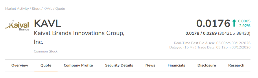 4、Kaival Brands Innovations Group, Inc. (OTCQB:KAVL)