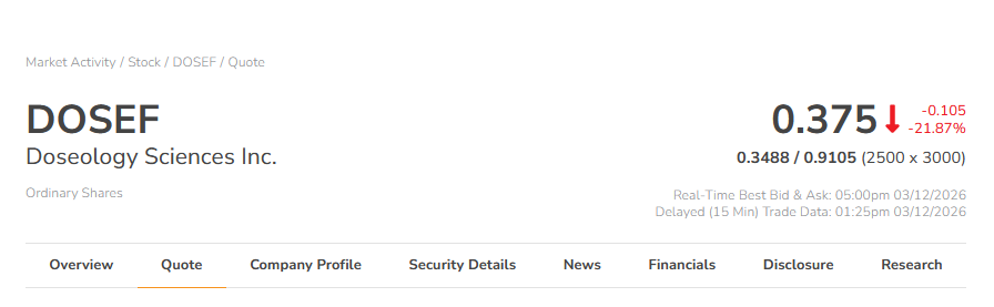 3、Doseology Sciences Inc. (CSE:MOOD;OTCQB:DOSEF)