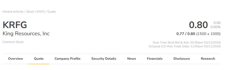 5、King Resources, Inc (OTCQB:KRFG)