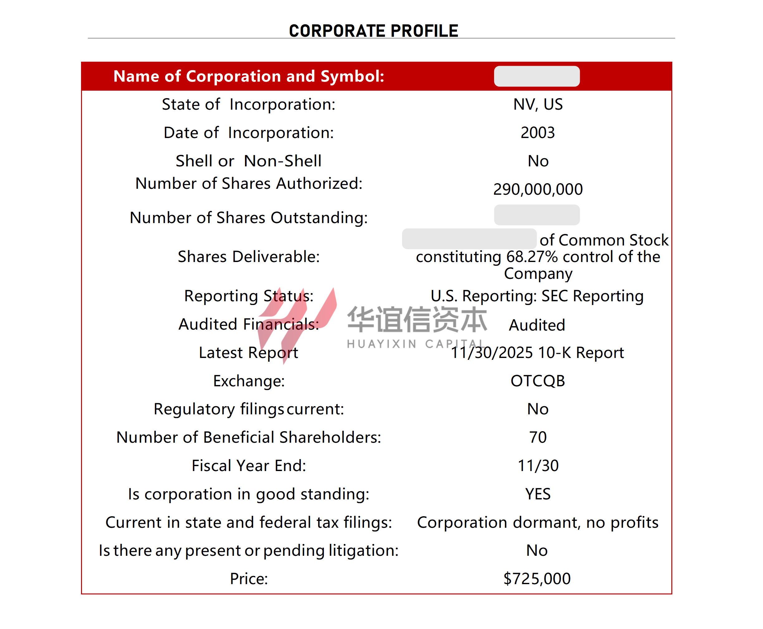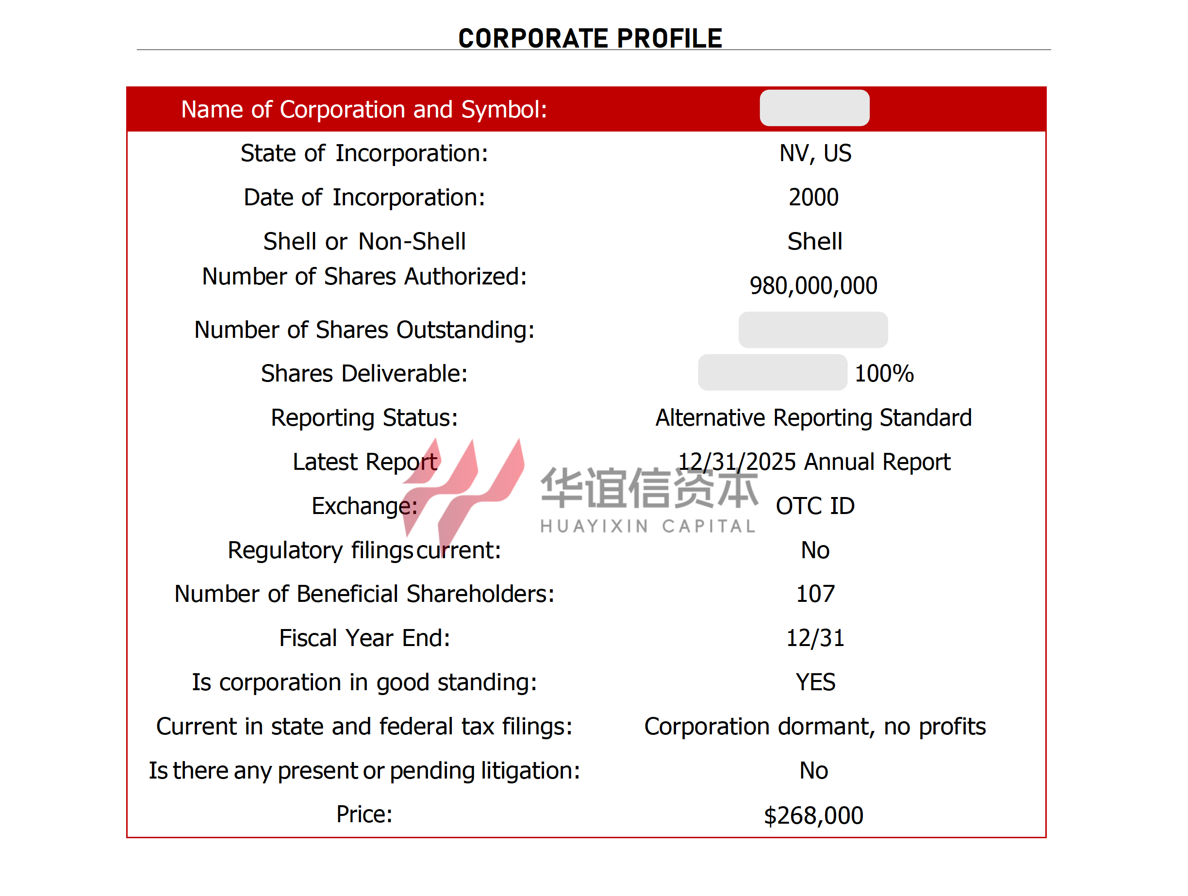 华谊信资本OTCQB层级的壳资源—— 企业「进阶资本化优质载体」: