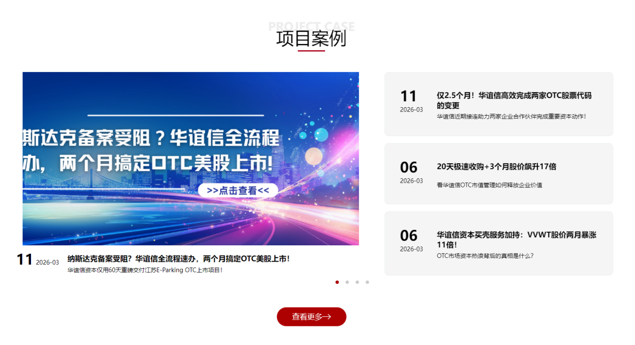 同时,新增的OTC团队介绍板块,重点展示华谊信资深行业专家顾问团队,彰显华谊信资本在跨境上市领域的深厚积累与专业实力,让企业选择更放心。