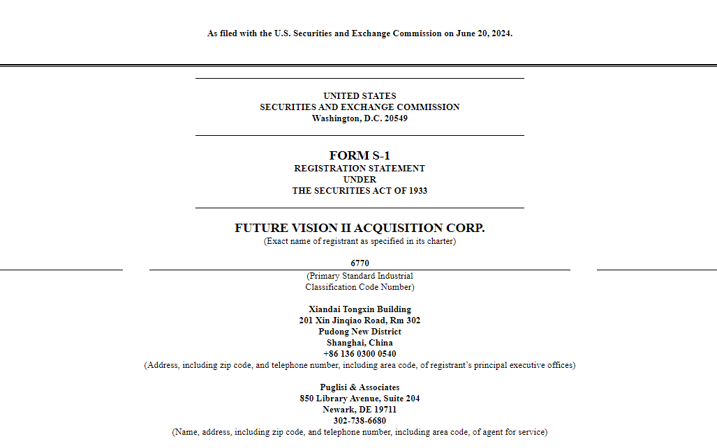 今日凌晨,总部位于上海的SPAC:Future Vision II Acquisition Corp公开向美SEC递交招股书,计划在纳斯达克上市,代码:FVNNU。