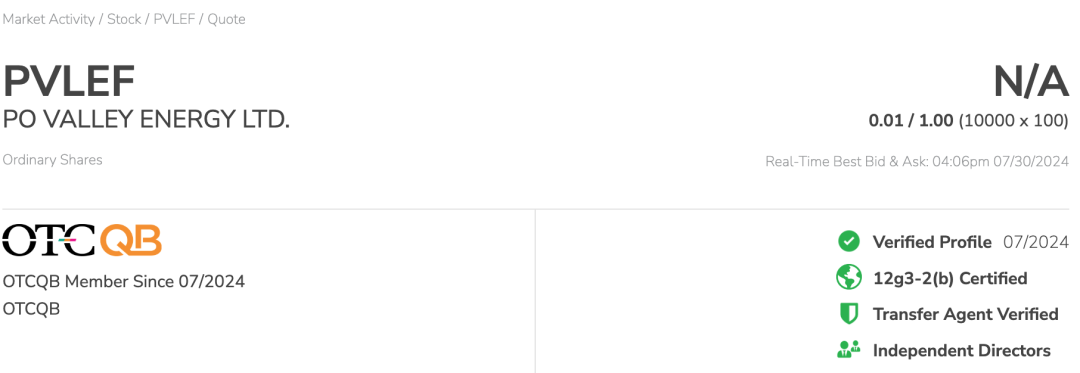 3、PO VALLEY ENERGY LTD. (股票代码: PVLEF)