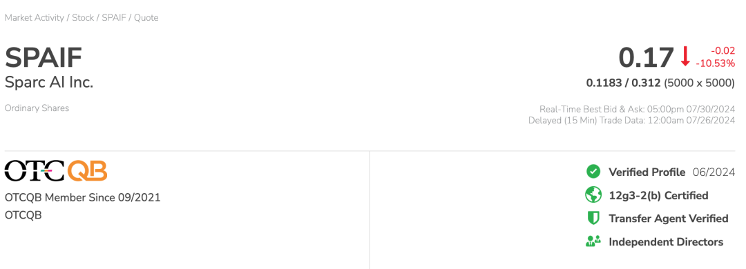 7、Sparc AI Inc. (股票代码: SPAIF)