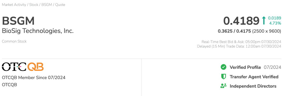 1、BioSig Technologies, Inc. (股票代码: BSGM)