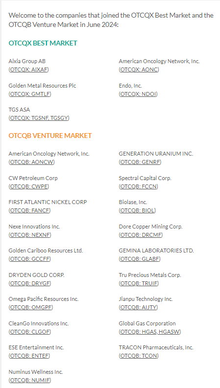 6月,美国OTC市场迎来24家新公司,比5月减少13家,暂无公司转入主板市场。