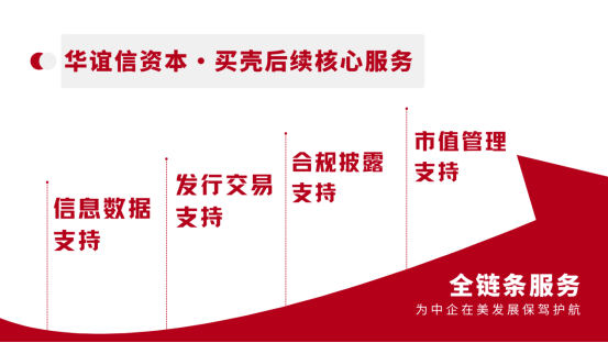 针对客户OTC买壳需求,华谊信资本将以专业上市辅导能力承接服务商角色,不仅为客户精准匹配适配壳资源并协助完成收购、控股权转让,还提供股票发行、转股操作及美国OTC挂牌上市前、中、后全周期支持,打造覆盖全流程的一站式服务方案。